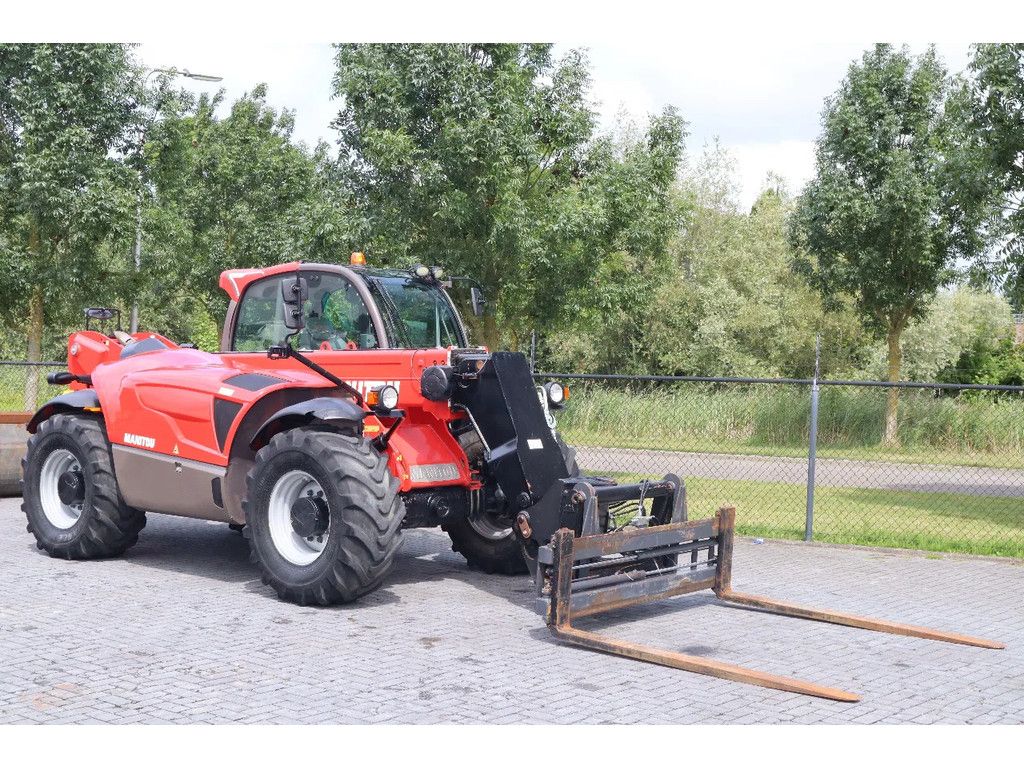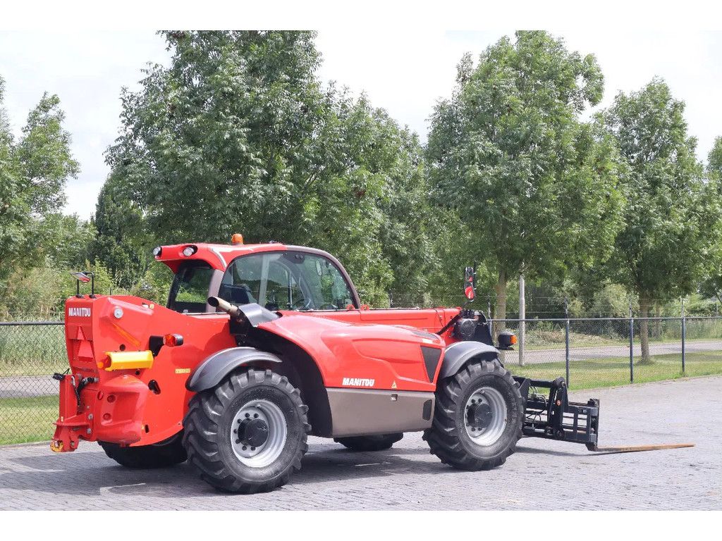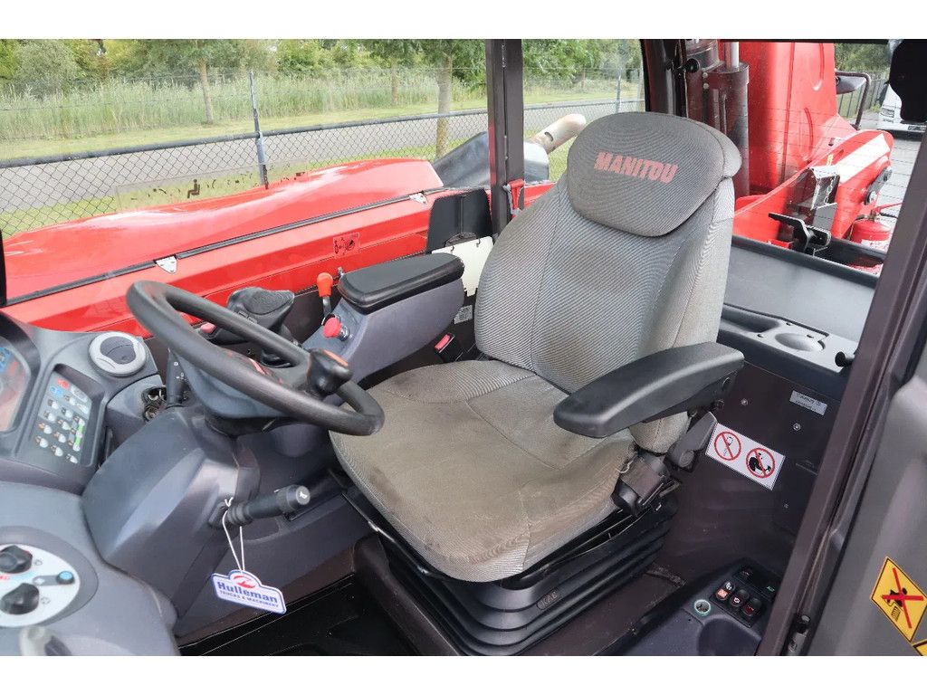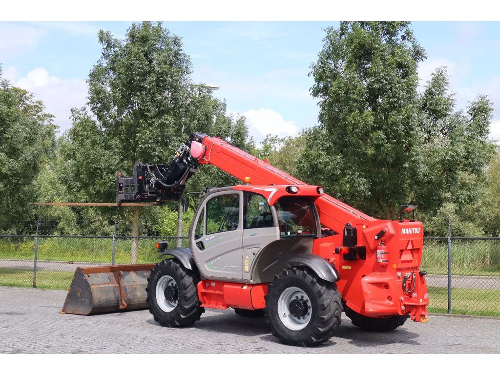 Manitou MLT 960 Year: 2018 Hours: 1.398 Weight: 11.700 kg Performance: Max lifting height: 9 m Max horizontal reach: 5.3 m Max lifting capacity: 6.000 kg Engine & Transmission: John Deere 405PWX 104 kW / 141 hp Emissions: Stage IV / Tier 4 Top speed: 40 km/h Steering: Crab steering Front wheel steering All-wheel steering Equipment: Swing quick coupling Hydraulic fork carriage Working lights Bucket Airco Air suspended seat Cabin heater Frame levelling (sway) Proportional joystick Rear-view camera Radio Hydraulic trailer hitch Trailer hydraulics