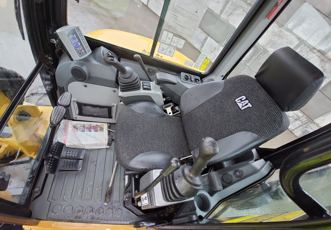 Hours on meter 701 h Total weight 4.990 kg Documents CE certified CE document available On request EPA Parts book Operation manual Specifications Engine Brand Caterpillar Type C2.4 Engine power 0 hp Cylinder amount 4 Quick coupler Cabin Airsuspension seat Airconditioning Undercarriage Shoes width 400 mm Tracks width 1990 mm Boom and stick Type Mono Equipment Bucket Amount 3 Type of bucket Loading Width of the bucket 1.460 mm